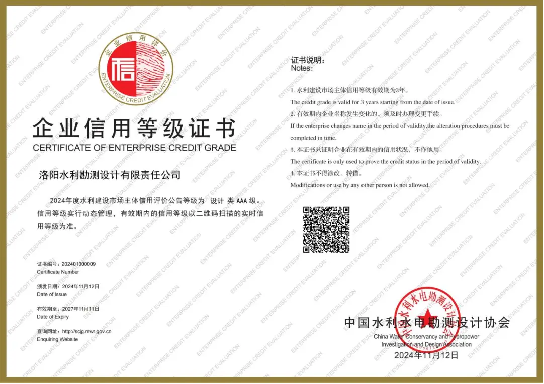 洛陽(yáng)水利勘測(cè)設(shè)計(jì)有限責(zé)任公司前身成立于1959年,經(jīng)過(guò)60多年的技術(shù)積累,現(xiàn)已成為集國(guó)家頒發(fā)的巖土工程勘察甲級(jí)資質(zhì)、水利工程設(shè)計(jì)甲級(jí)資質(zhì)、水利水電咨詢單位甲級(jí)資信證書(shū)和工程測(cè)量、測(cè)繪資質(zhì)、水資源論證、水文水資源調(diào)查評(píng)價(jià)、生產(chǎn)建設(shè)項(xiàng)目水土保持方案編制、建筑工程設(shè)計(jì)等資質(zhì)證書(shū)于一體的綜合性科技服務(wù)企業(yè)。